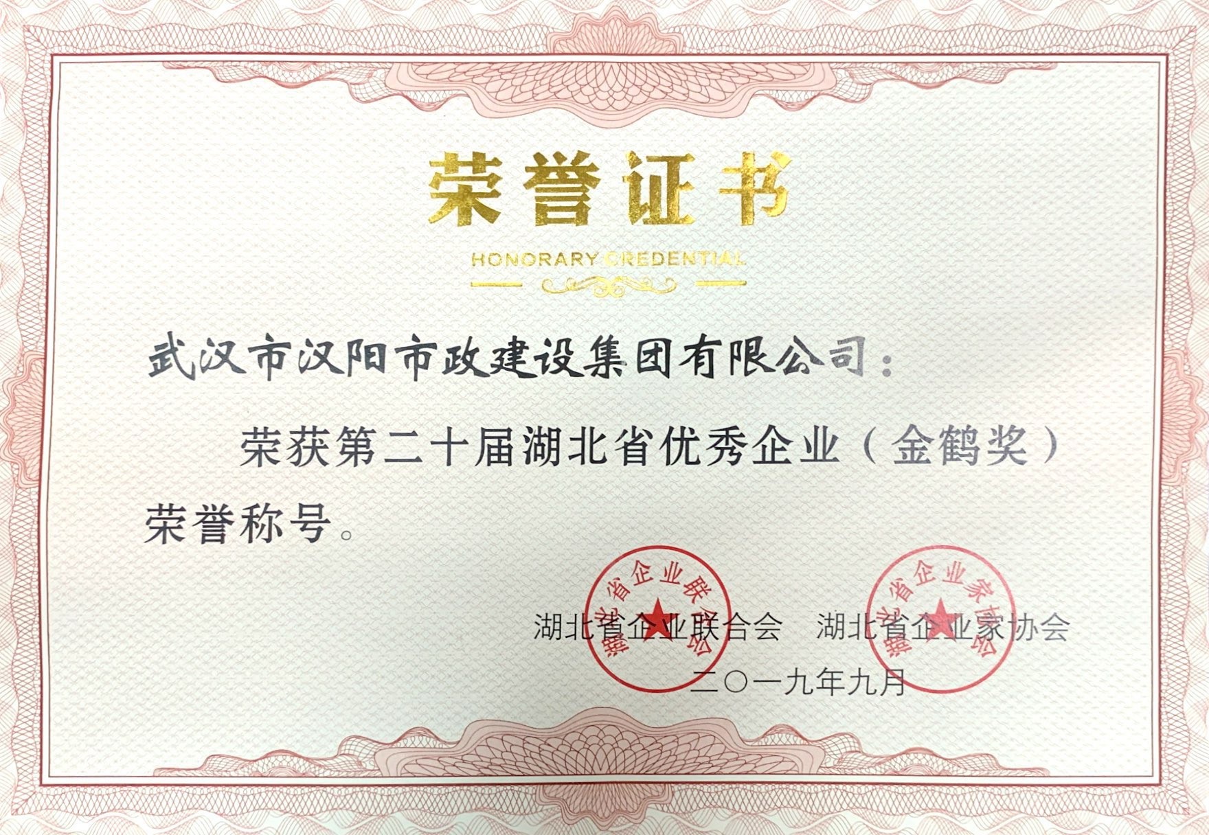 湖北省優秀企業稱號