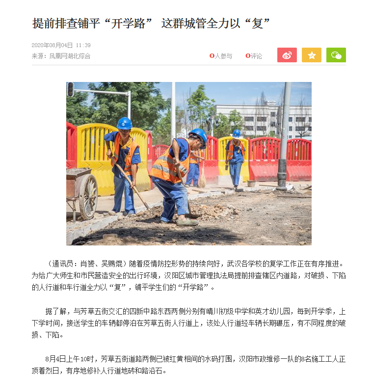 ? ? ? 近日,漢陽(yáng)市政維修一隊(duì)負(fù)責(zé)的漢陽(yáng)區(qū)內(nèi)日常道路維修工作,先后受到漢陽(yáng)知音、鳳凰網(wǎng)湖北綜合、長(zhǎng)江日?qǐng)?bào)等主流媒體的一致好評(píng)。此前,漢陽(yáng)市政維修一隊(duì)道路維修工作也曾多次獲媒體正面報(bào)道。