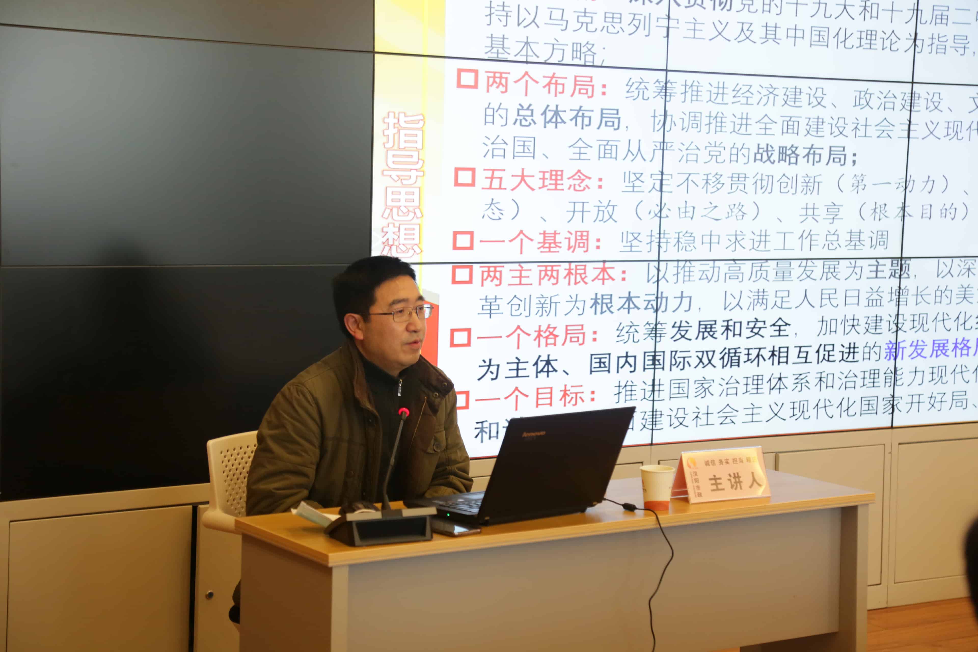 ? ? ? 12月26日上午,黨的十九屆五中全會精神宣講活動在集團18樓會議室舉行,宣講邀請了武漢市社科院政法所所長、市委宣講團成員田祚雄進行專題授課。漢陽市政黨委成員代表、各支部書記、副書記等相關人員參加了此次活動。