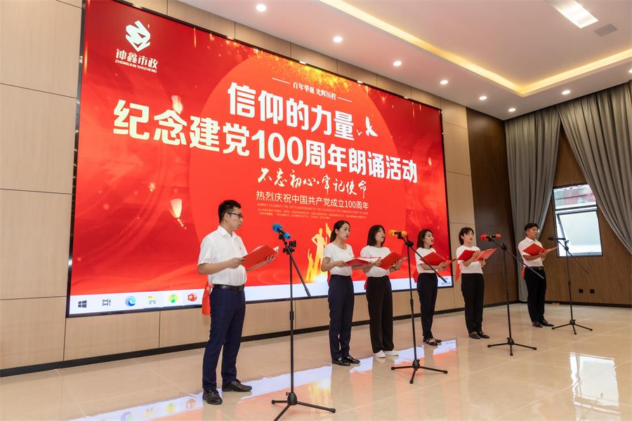 朗朗誦讀聲,道不盡百年波瀾壯闊;拳拳赤子心,創造著偉大光輝歷程。6月28日,高新三路項目部會議室內紅色旗幟高高飄揚,在喜迎中國共產黨建黨100周年之際,漢陽市政鐘鑫公司舉辦“信仰的力量”紀念中國共產黨建黨一百周年朗誦活動,以深情誦讀顯風采,以赤誠紅心致黨心。機關黨支部副書記、辦公室副主任賈慧然,鐘鑫公司黨支部書記、董事長陳俊俊,鐘鑫公司黨支部副書記、總經理盧永紅,黨支部副書記李艷娥蒞臨比賽現場并擔任評委。來自部門及項目部共70余人參加此次活動。