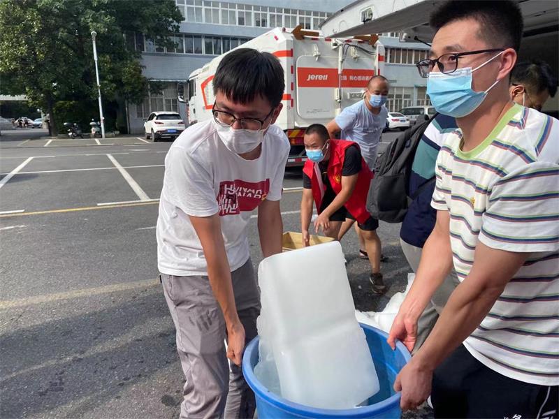 機關支部黨員在國棉社區搬運冰塊