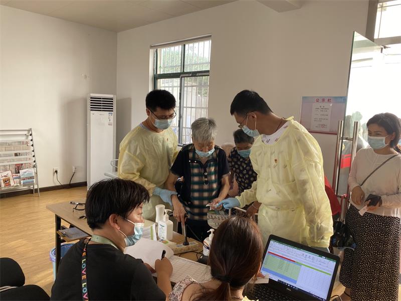 五公司支部黨員來到江花社區漢泰苑工作站,該社區老年人較多,下沉黨員主要負責幫助維持現場秩序和指引,并協助老年人做好核酸檢測的登記工作。
