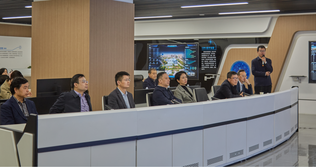 陳勁超一行來到漢陽市政建設大廈,參觀漢陽市政數智化管理中心,聽取了漢陽區城市數字公共基礎設施建設情況的匯報,并就漢陽區城市信息模型(CIM)平臺項目的建設及運營情況進行現場交流。