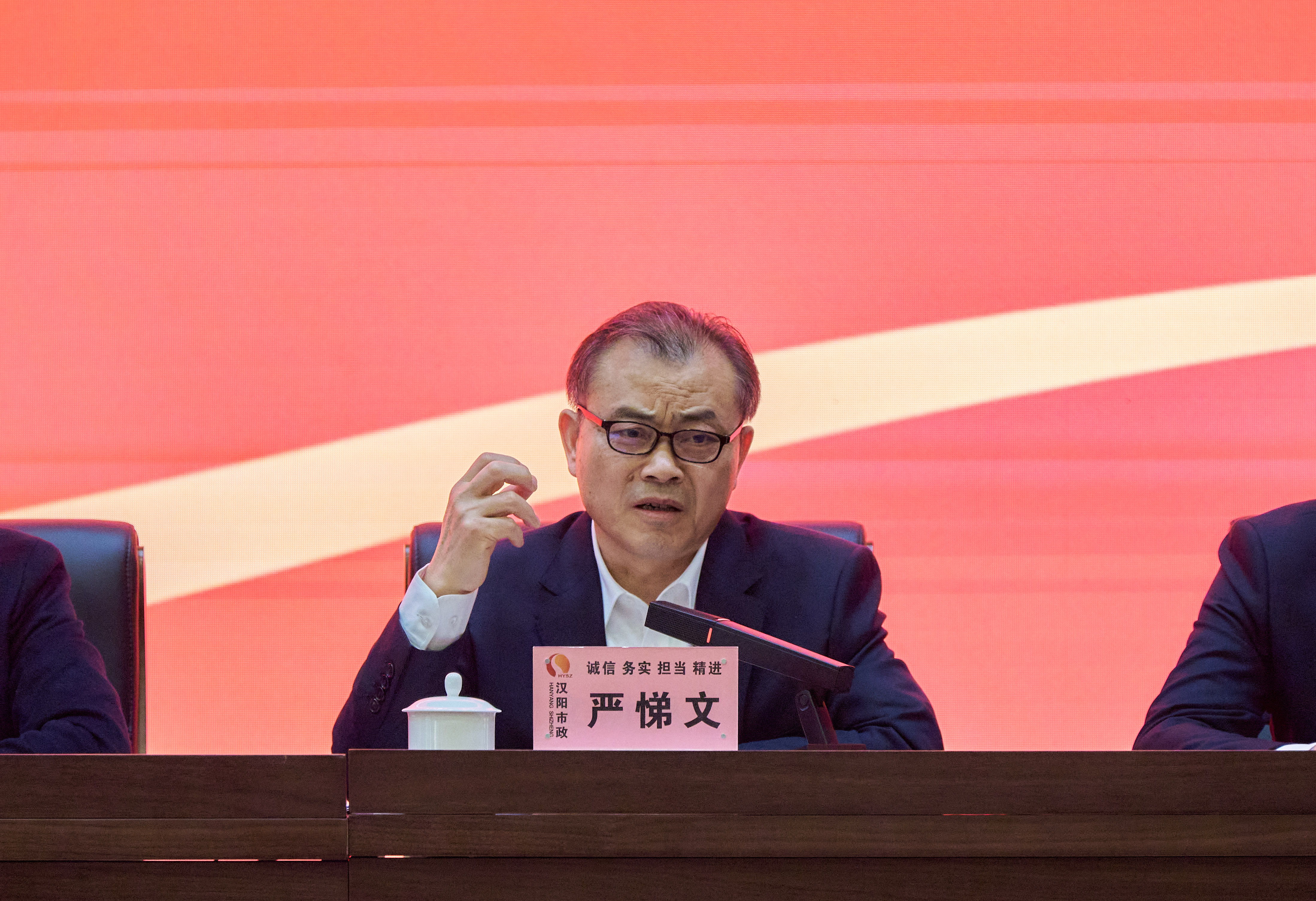 嚴悌文代表黨委班子作總結發言,向所有為漢陽市政發展作出貢獻的職工表示感謝,也從企業生存發展全局出發,向全體干部職工提出要求。
