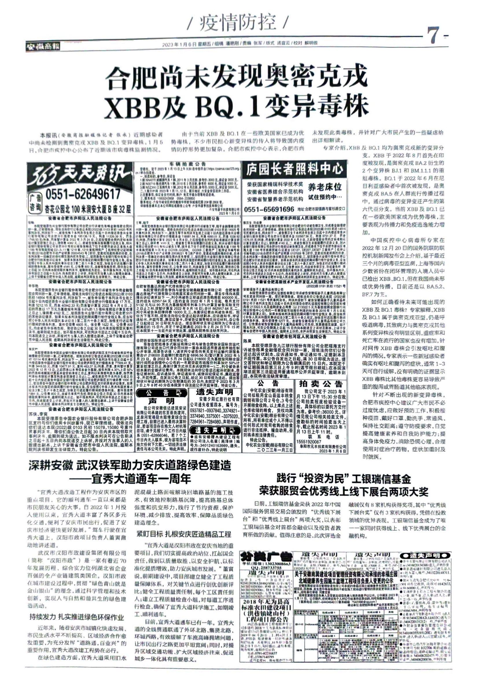 安徽商報(bào)推出《深耕安徽 武漢鐵軍助力安慶道路綠色建造——宜秀大道通車(chē)一周年》專版報(bào)道。