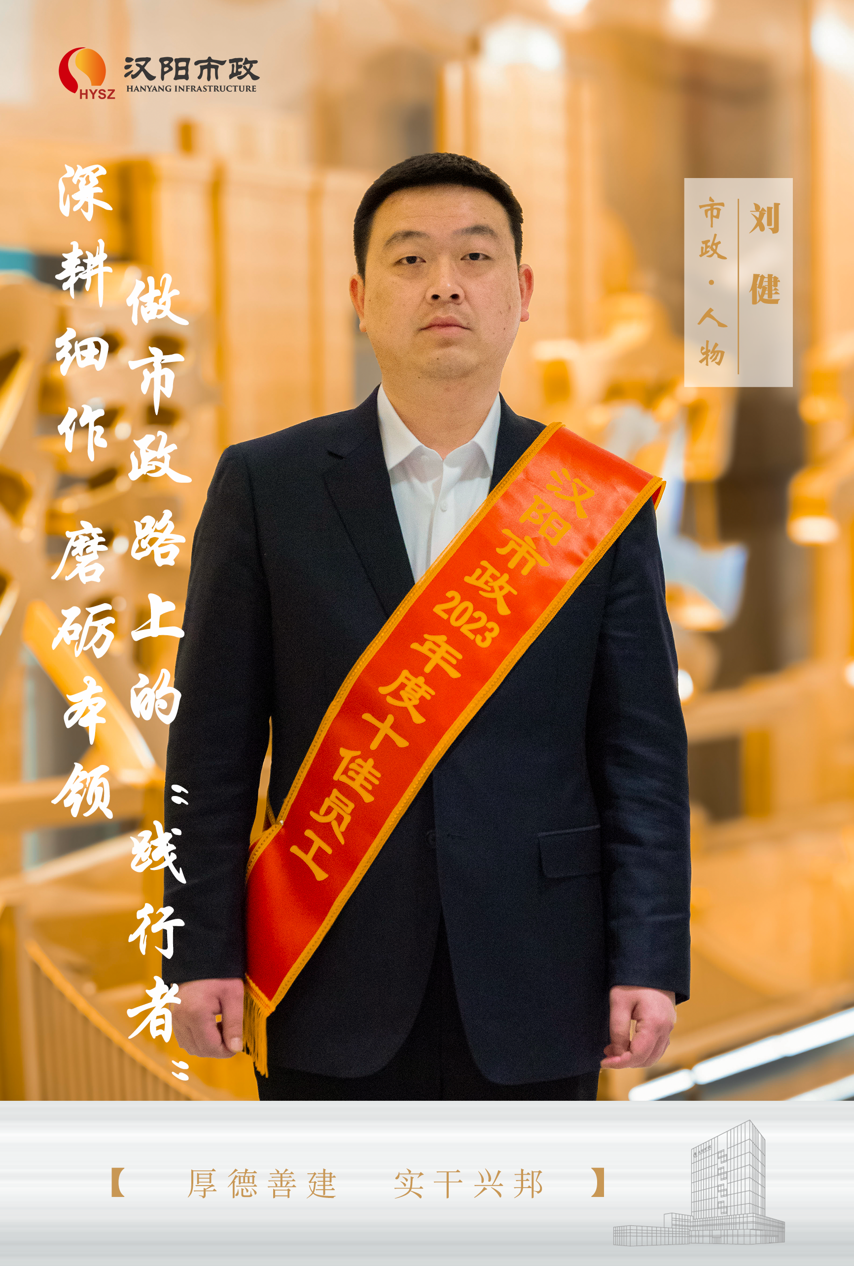 劉健,中共黨員,國家一級建造師,高級工程師。2012年7月入職漢陽市政七公司,在職期間先后獲得2016年度漢陽市政“簽證技能大賽”一等獎、2016年度漢陽市政“十佳一線員工”、2017年度漢陽區建設局“先進個人”、2023年度漢陽市政“經營先進個人”、2023年度漢陽市政“十佳員工”等榮譽,現任漢陽市政七公司襄陽分公司副總經理。